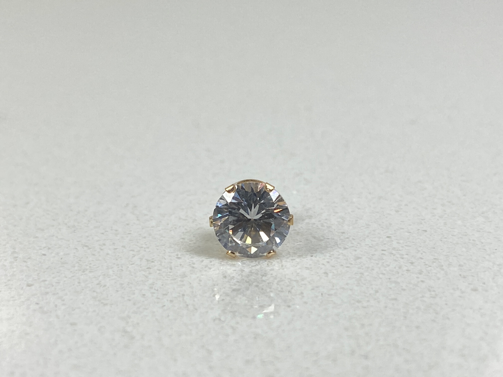 A classic single round cubic zirconia claw set stud earring with 9ct gold.