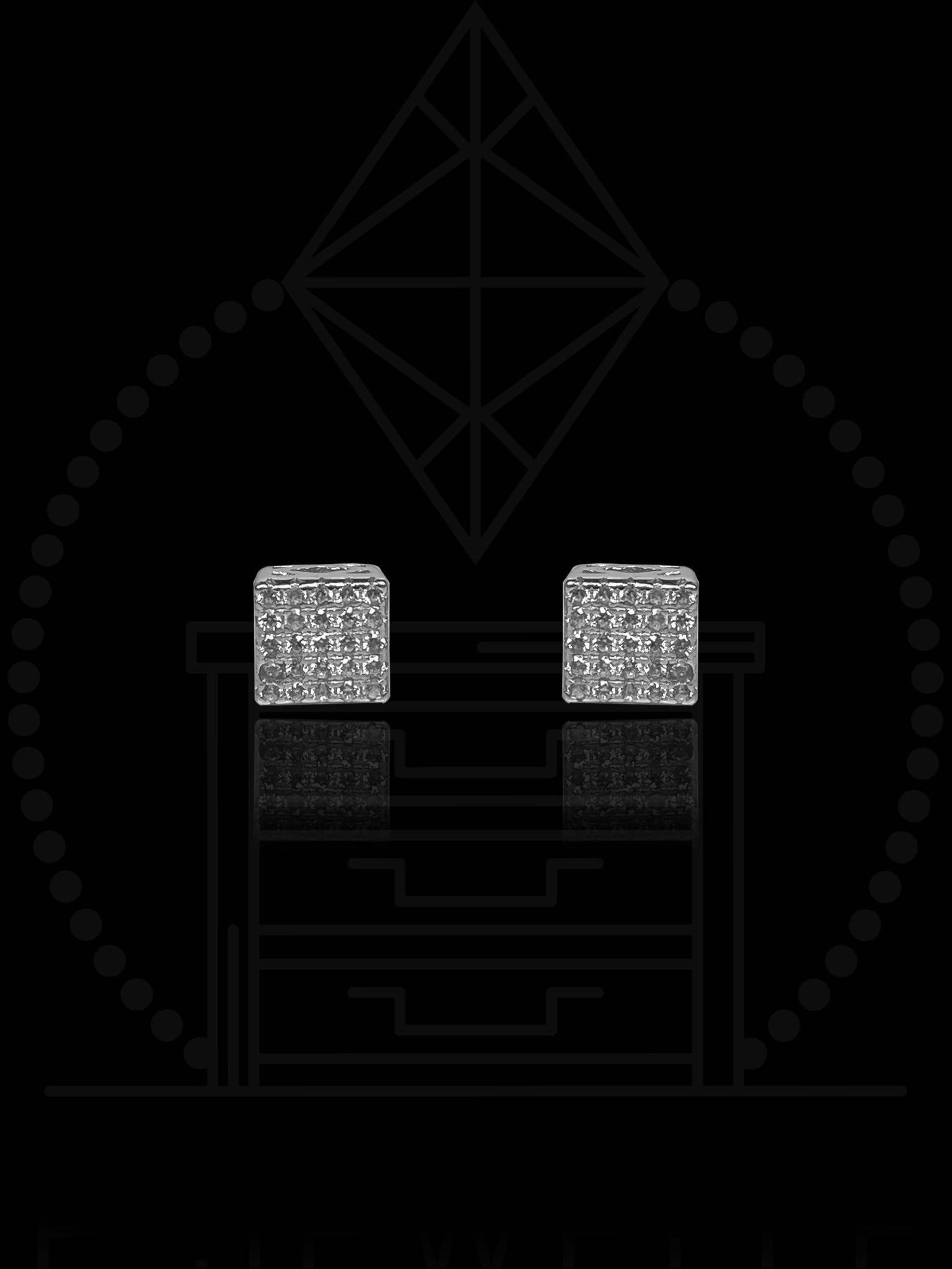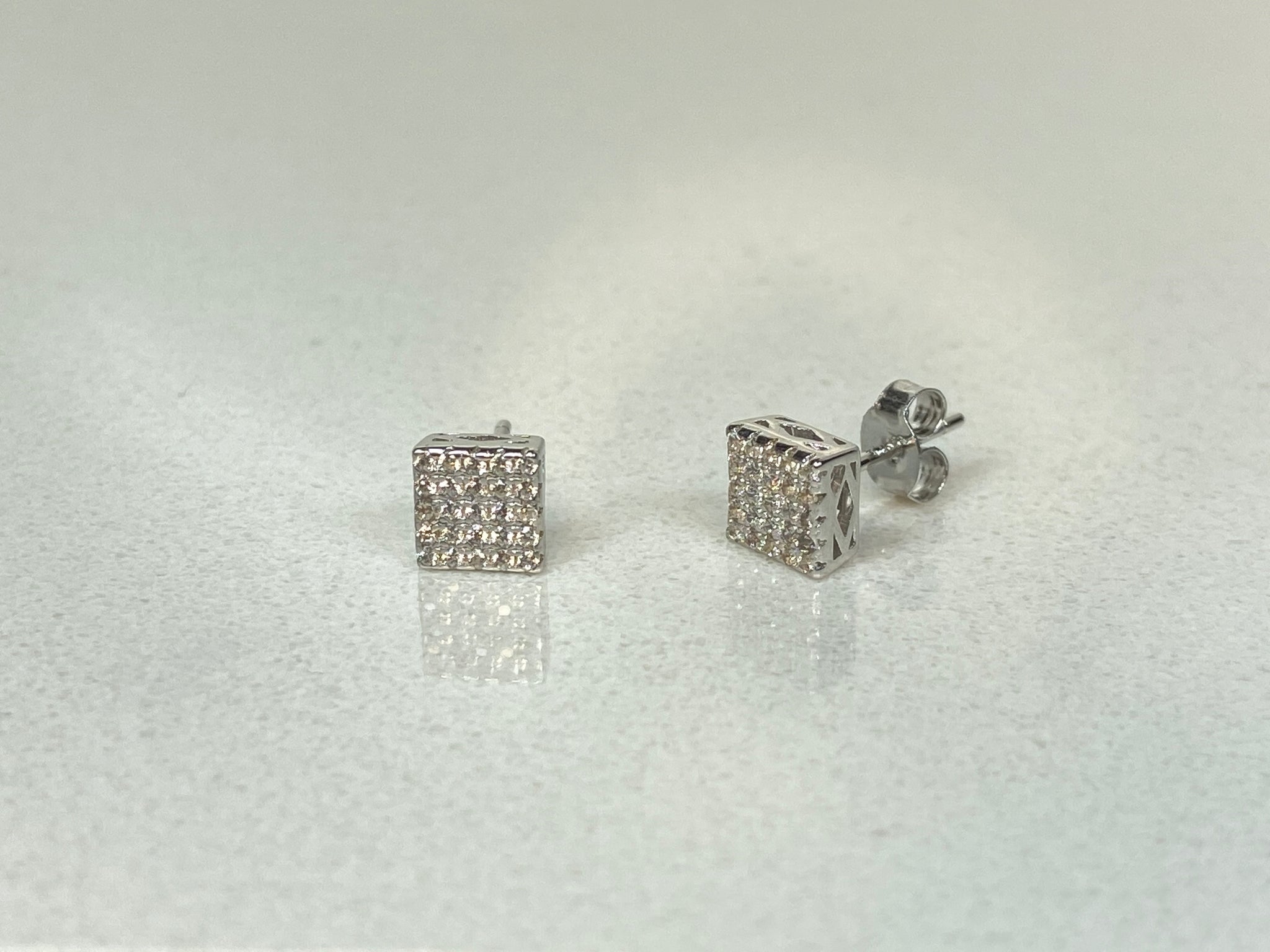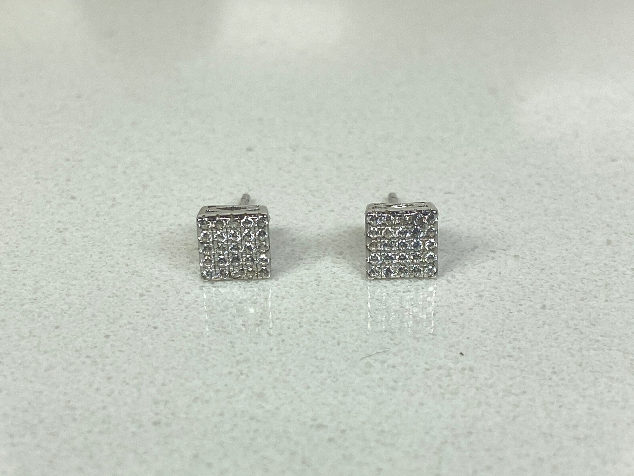 Micro-paved Square Stud Earrings with cubic zirconia stones and real Sterling silver.