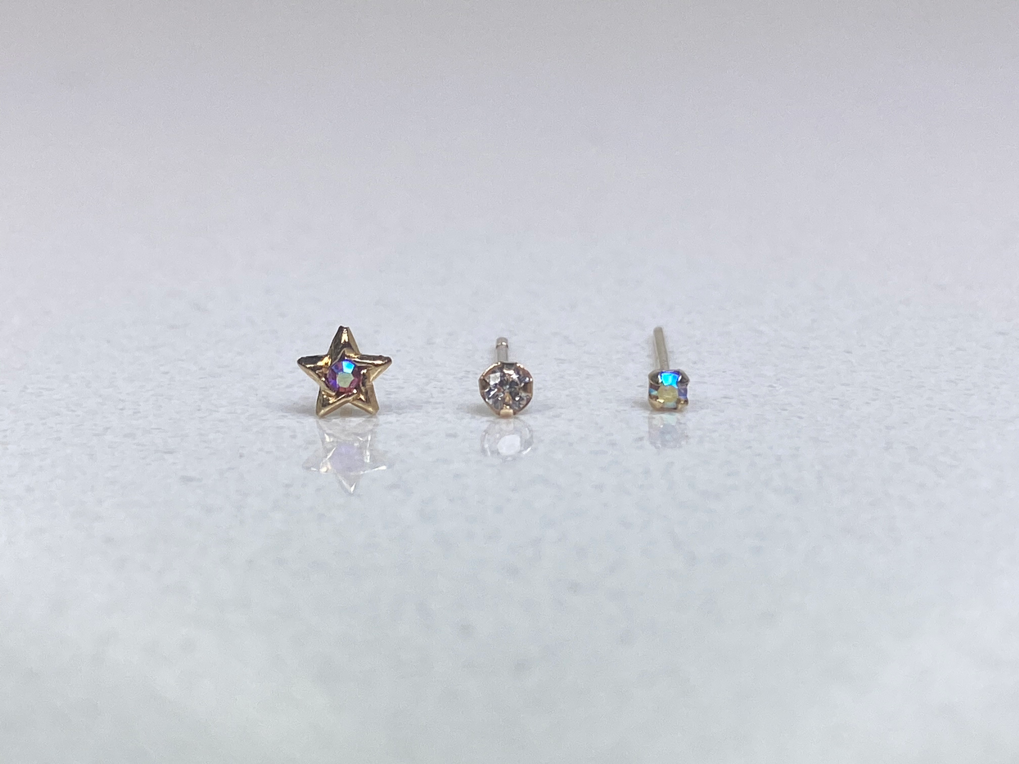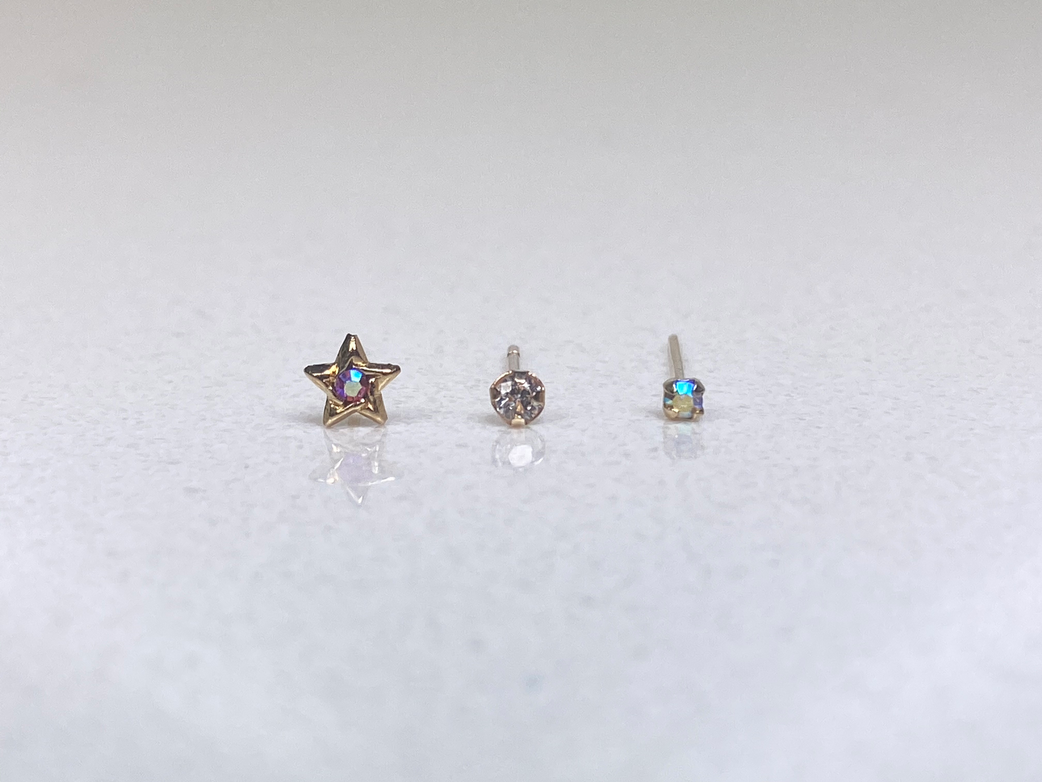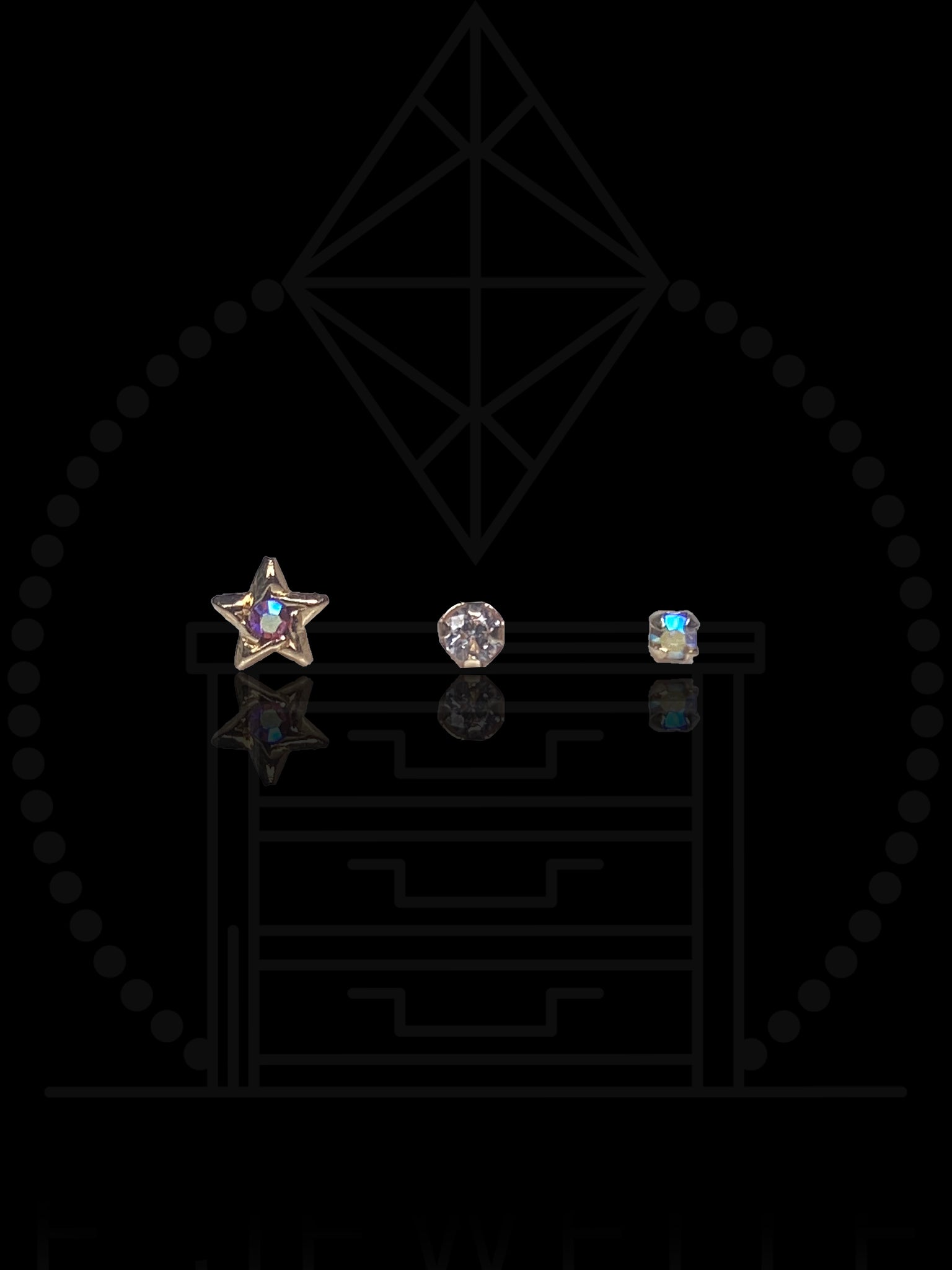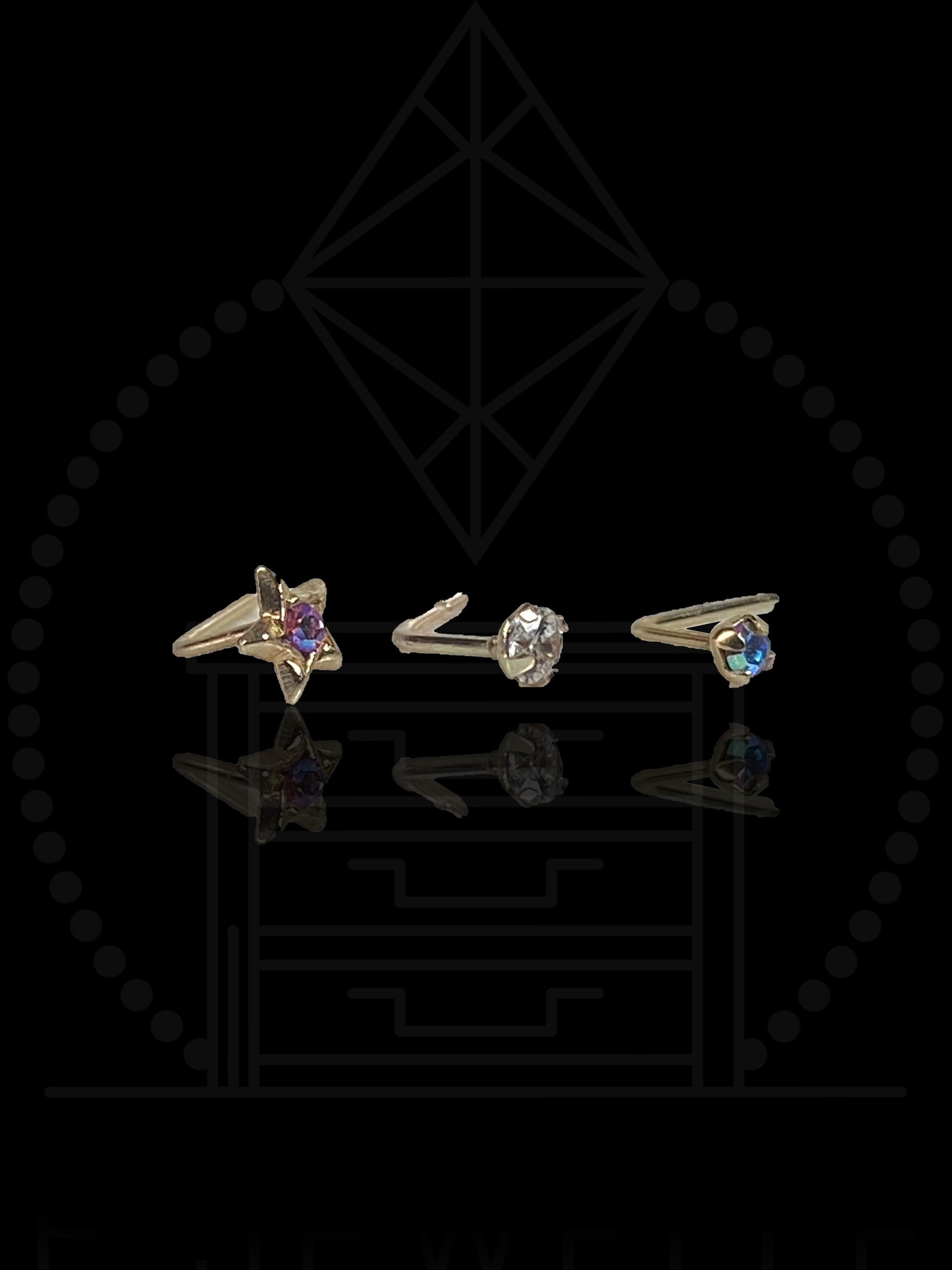 Add some variety to your nose stud collection with this set of 3 9kt gold with cubic zirconia assortment. Nose studs come bent.
