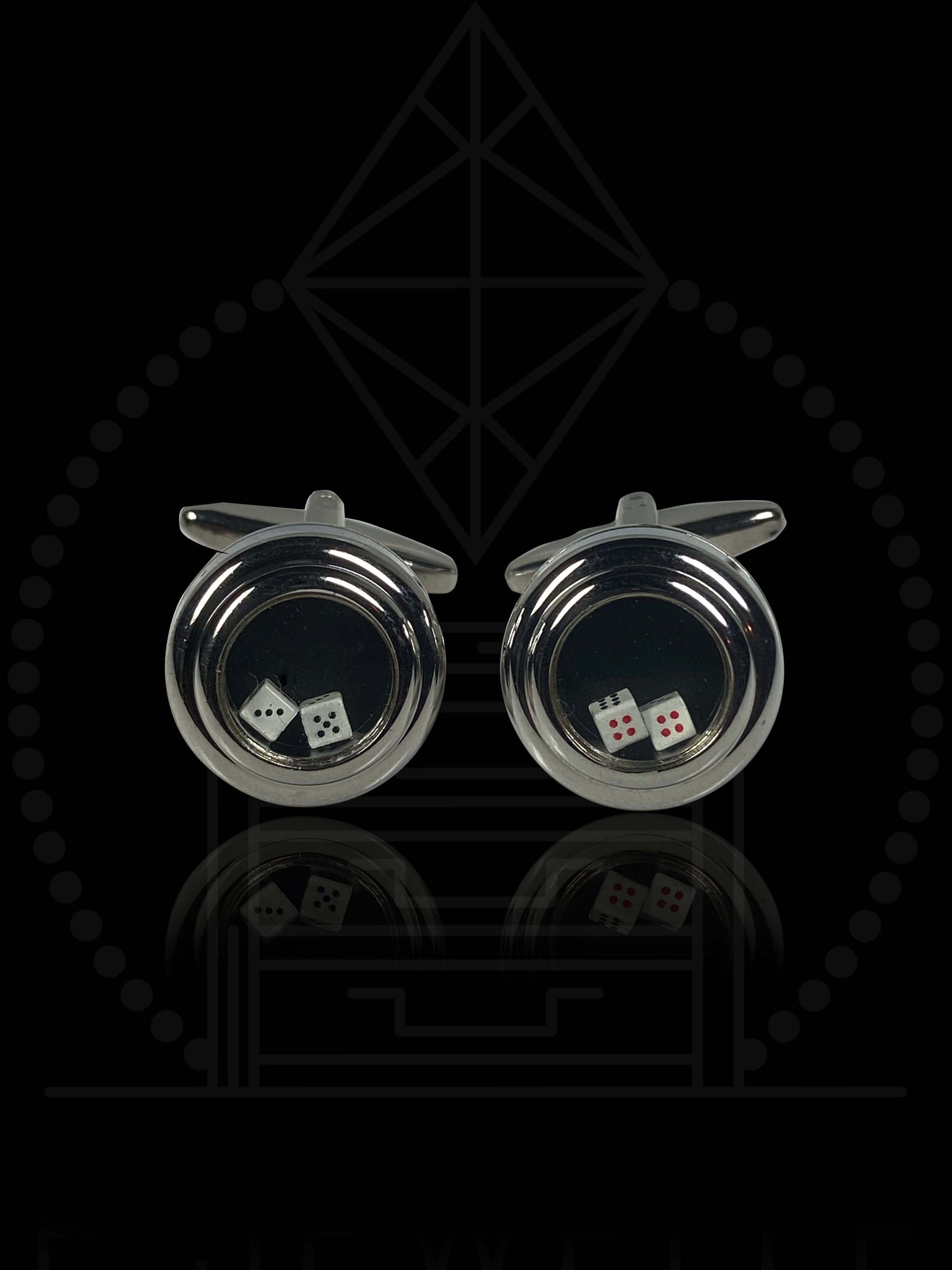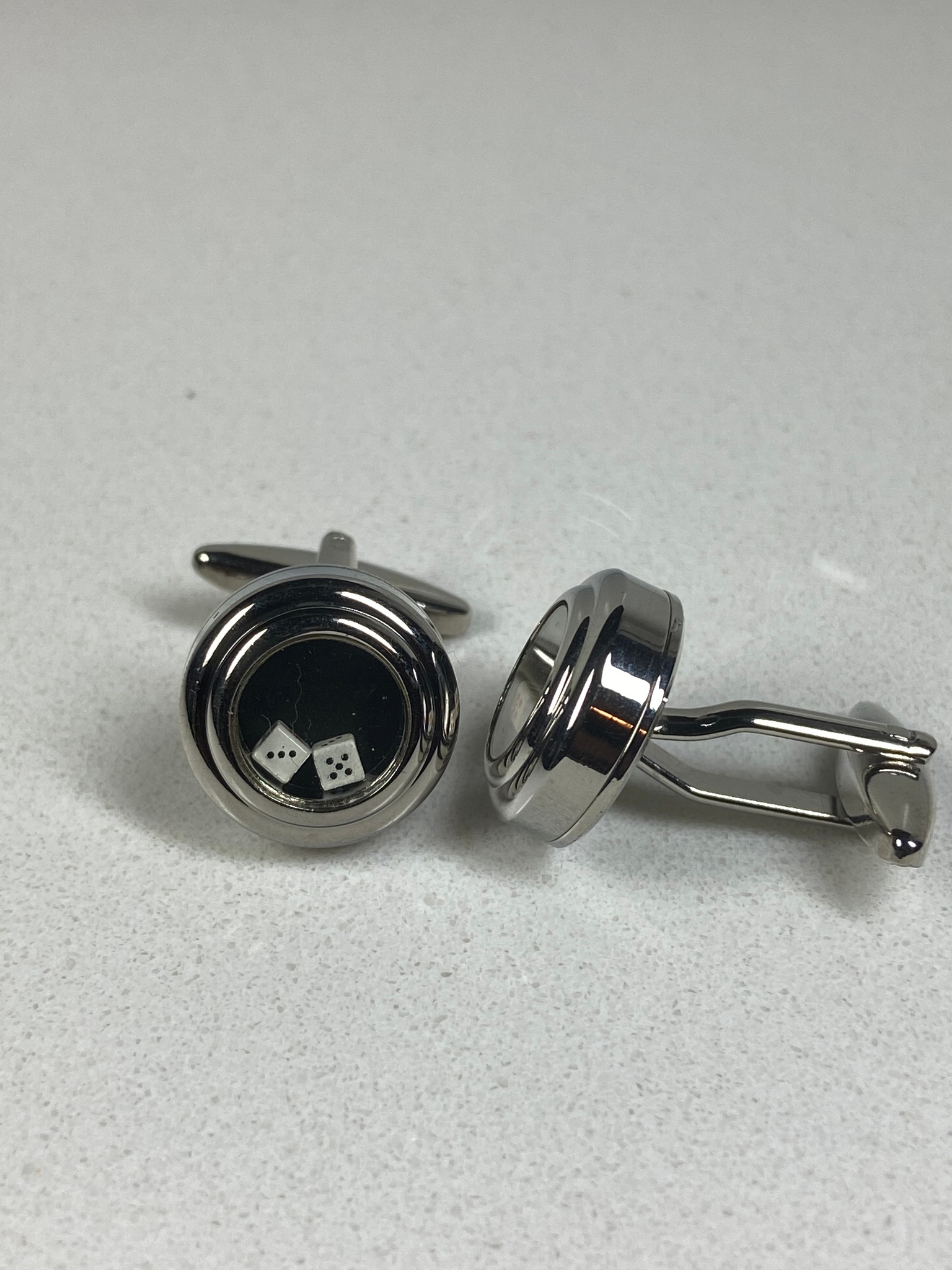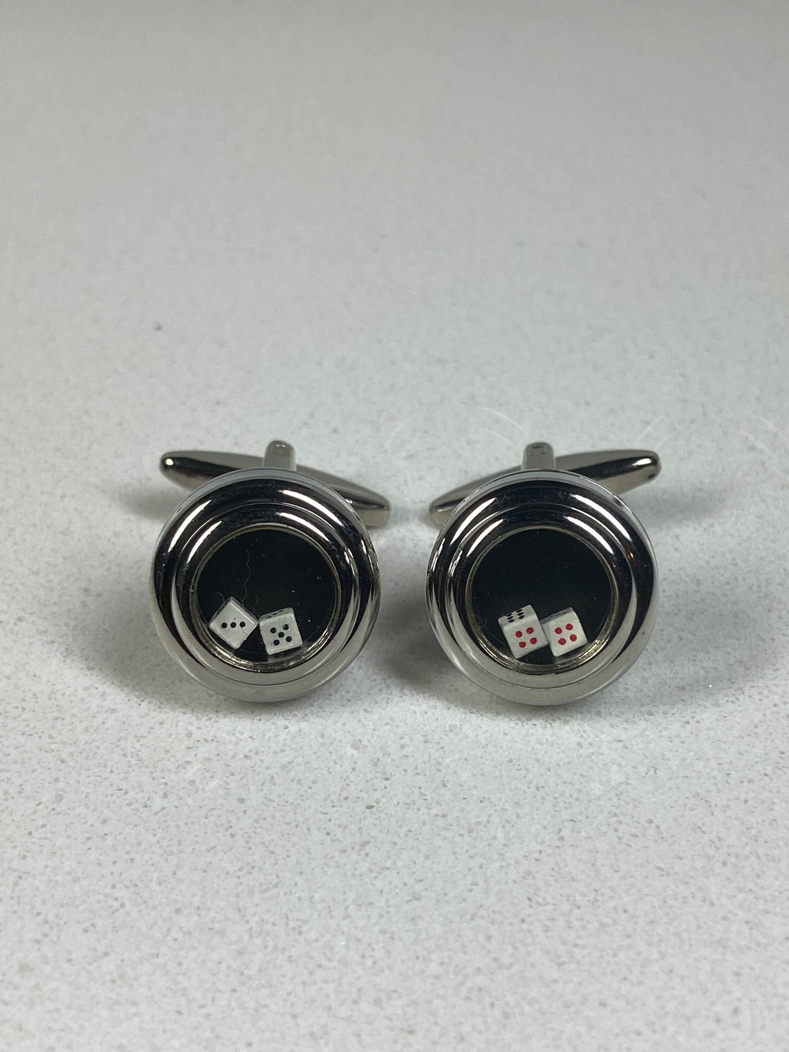 Sterling silver cufflinks with free moving dice within the clear space.